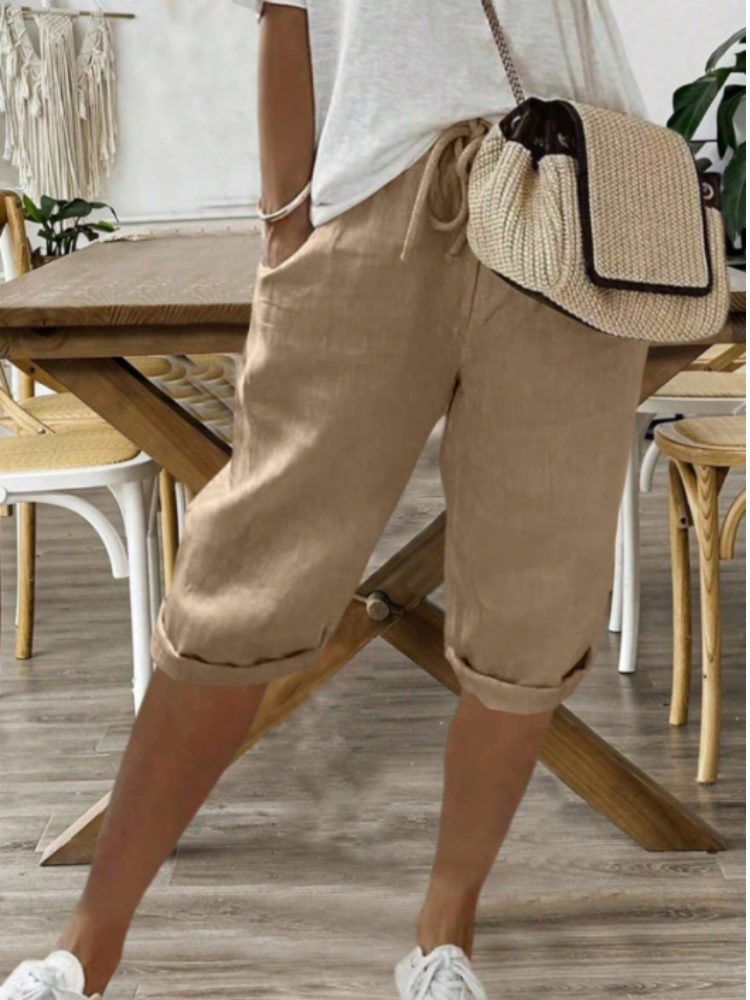 Designed for effortless comfort and everyday ease. These women’s casual linen shorts feature a relaxed fit with a drawstring waist, offering a breathable feel and adjustable comfort for all-day wear.